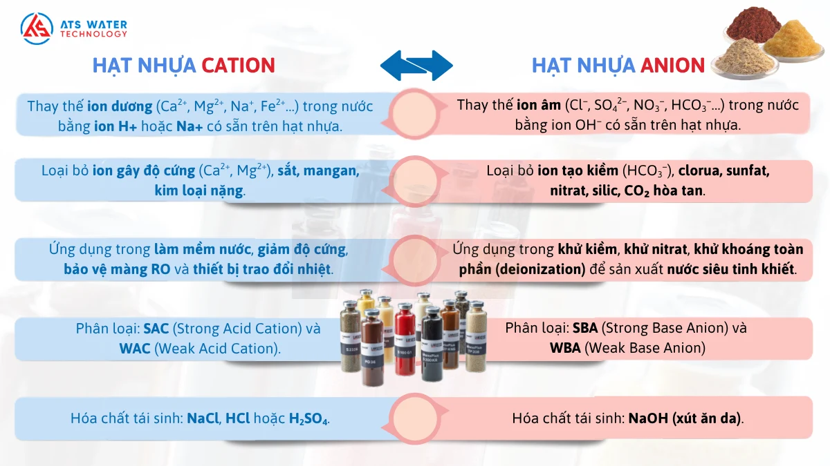 Phân biệt hạt nhựa cation và anion | Chọn loại nào phù hợp hơn?